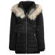 Ladies Black Faux Fur Hood Padded Winter Parka Jacket Coat