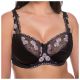 Ladies Gemm Black With Pink Floral & Heart Embroidery Satin & Lace Plus Size Bra in D - J Cup